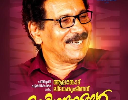 1May2025 പത്മപ്രഭ പുരസ്കാരം ലഭിച്ച യുവകലാസാഹിതി കേരള ഘടകം പ്രസിഡണ്ട് ആലങ്കോട് ലീലാകൃഷ്ണന് യുവകലാസാഹിതി യു എ ഇയുടെ അഭിനന്ദനങ്ങൾ.