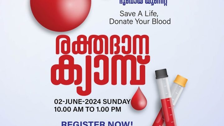 യുവകലാസാഹിതി ദുബായ് വാർഷികാടിസ്ഥാനത്തിൽ നടത്തിവരുന്ന ബ്ലഡ് ഡൊണേഷൻ ഡ്രൈവ് ജൂൺ 2, ഞായറാഴ്ച രാവിലെ 10 മുതൽ 1 മണി വരെ ബ്ലഡ് ഡൊണേഷൻ സെൻ്റർ, ജെദാഫ്, ദുബായിൽ (Blood Donation Centre, Jeddaf, Dubai) വച്ച് നടക്കുന്നു.