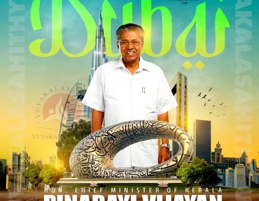 ഇടതുപക്ഷ ജനാധിപത്യ മുനി സർക്കാരിന് ചടുലവും ക്രിയാത്മകവുമായ നേതൃത്വം നൽകുന്ന കേരളത്തിൻറെ പ്രിയങ്കരനായ മുഖ്യമന്ത്രി അദ്ദേഹത്തിൻറെ ഗൾഫ് സന്ദർശനത്തിന്റെ പരിസമാപ്തി കുറിക്കുന്നതിന്റെ ഭാഗമായി ഡിസംബർ 1, 2 തീയതികളിൽ ദുബായിൽ എത്തുന്നു. ഈ സന്ദർശനം പ്രവാസി മലയാളികളെ സംബന്ധിച്ച് അത്യന്തം സന്തോഷജനകമാണ് . നോർക്ക അംഗീകൃത സംഘടനയായ യുവകലാസാഹിതി യുഎഇ പ്രവാസി മലയാളികളുടെ ഈ വലിയ സന്തോഷത്തിന്റെ ഭാഗമാകുന്നു. സമാദരണീയനായ മുഖ്യമന്ത്രിക്ക് ഹൃദ്യമായ സ്വാഗതമരുളുന്നതിനൊപ്പം അദ്ദേഹം പങ്കെടുക്കുന്ന പരിപാടികൾ വൻ വിജയമാക്കുവാൻ എല്ലാ ഭാരതീയരോടും അഭ്യർത്ഥിക്കുന്നു.